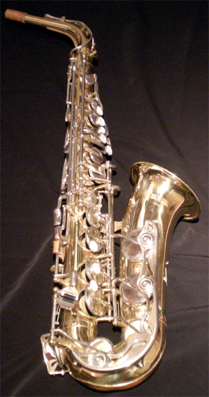 Yamaha YAS-23. The sax has been played a lot. It shows some wear on the main touch spots an keys. 2-tone. Lacquer is about 85%. It needs a complete repad. It is not ready to play. It has some dings on bow and bellrim, but nothing serious. It clickers as some corks are missing. Coming with original case and mouthpiece.Sold as is. SOLD